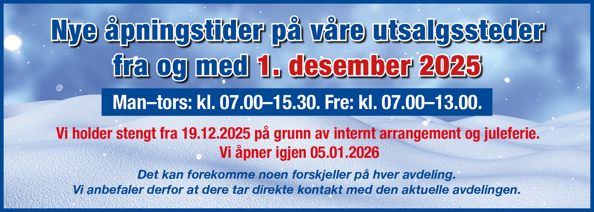 NY OPPLYSNING TIL ALLE VÅRE KUNDER: